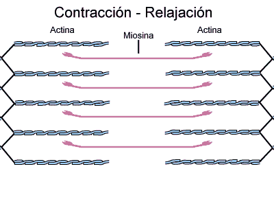 7. Los iones calcio inician fuerzas de atracción entre los filamentos de actina y miosina, haciendo que se deslicen unos sobre otros en sentido longitudinal, lo que constituye el proceso contráctil.