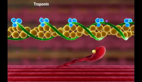 En presencia de grandes cantidades de iones calcio, se inhibe el propio efecto inhibidor del complejo troponina-tropomiosina sobre los filamentos de actina.