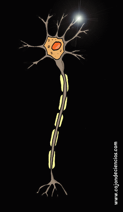 Las células de Schwann depositan la vaina de mielina alrededor del axón de la siguiente manera: en primer lugar, la membrana de una célula de Schwann rodea el axón. Después, la célula de Schwann rota muchas veces alrededor del axón, depositando múltiples capas de membrana de la célula de Schwann que contiene la sustancia lipídica esfingomielina. Esta sustancia es un excelente aislante eléctrico que disminuye el flujo iónico a través de la membrana aproximadamente 5.000 veces. En la unión entre dos células de Schwann sucesivas a lo largo del axón permanece una pequeña zona no aislada de solo 2 a 3 μm de longitud en la que los iones pueden seguir fluyendo con facilidad a través de la membrana del axón entre el líquido extracelular y el líquido intracelular del interior del axón. Esta zona se denomina nódulo de Ranvier.