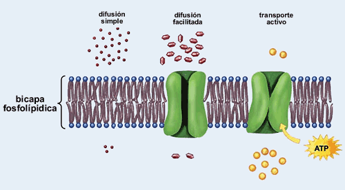 El transporte a través de la membrana celular, ya sea directamente a través de la bicapa lipídica o a través de las proteínas, se produce mediante uno de dos procesos básicos: difusión o transporte activo.