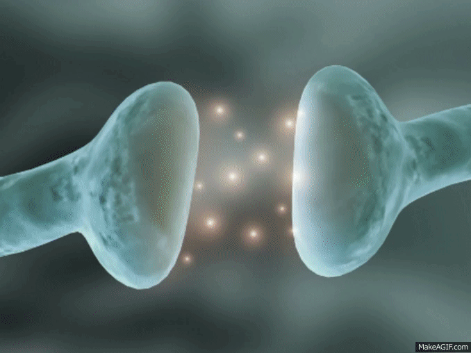 La mayoría de las sinapsis utilizadas para la transmisión de señales en el sistema nervioso central del ser humano son sinapsis químicas. En estas sinapsis, la primera neurona segrega un producto químico denominado neurotransmisor (a menudo llamado sustancia transmisora) a nivel de la terminación nerviosa, que a su vez actúa sobre las proteínas receptoras presentes en la membrana de la neurona siguiente para excitarla, inhibirla o modificar su sensibilidad de algún otro modo. Hasta hoy se han descubierto más de 40 neurotransmisores importantes.