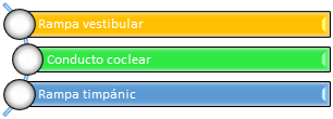 La rampa vestibular y el conducto coclear están separados por la membrana de Reissner y la rampa timpánica y el conducto coclear están divididos por la membrana o lámina basilar, que contiene de 20.000 a 30.000 fibras basilares que se proyectan desde el centro óseo de la cóclea, el modíolo o columela, hacia su pared externa. La longitud de las fibras basilares aumenta progresivamente a partir de la ventana oval y su diámetro disminuye desde la ventana oval hacia la helicotrema. La resonancia de las frecuencias altas en la lámina basilar se produce cerca de su base, zona por donde penetran las ondas sonoras en la cóclea a través de la ventana oval. La resonancia de las frecuencias bajas sucede cerca del helicotrema.