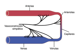 Las fibras nerviosas simpáticas inervan los vasos sanguíneos excepto los capilares, de igual forma se inervan los esfínteres precapilares y las metaarteriolas, pero en menor densidad.