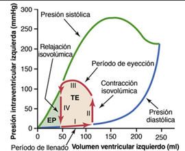 La curva de presión diastólica se determina llenando el corazón con volúmenes de sangre progresivamente mayores y midiendo la presión diastólica inmediatamente antes de que se produzca la contracción ventricular, que es la presión telediastólica del ventrículo. La curva de presión sistólica se determina registrando la presión sistólica que se alcanza durante la contracción ventricular a cada volumen de llenado. Hasta que el volumen del ventrículo que no se está contrayendo no aumenta por encima de aproximadamente 150 ml, la presión «diastólica» no aumenta mucho. Por tanto, hasta este volumen la sangre puede fluir con facilidad hacia el ventrículo desde la aurícula. Por encima de 150 ml la presión diastólica ventricular aumenta rápidamente, en parte porque el tejido fibroso del corazón ya no se puede distender más y en parte porque el pericardio que rodea el corazón se ha llenado casi hasta su límite. Durante la contracción ventricular, la presión «sistólica» aumenta incluso a volúmenes ventriculares bajos y alcanza un máximo a un volumen ventricular de 150 a 170 ml.