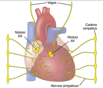 La eficacia de la función de bomba del corazón también está controlada por los nervios simpáticos y parasimpáticos (vagos), que inervan de forma abundante el corazón.