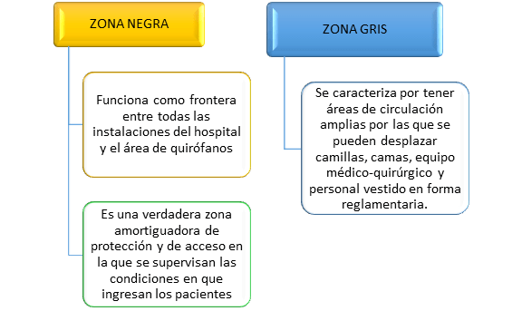 Las áreas de quirófanos se distribuyen en áreas de restricción o de protección que tienen por objeto poner barreras al acceso de fuentes de contaminación bacteriana a la sala de operaciones propiamente dicha.